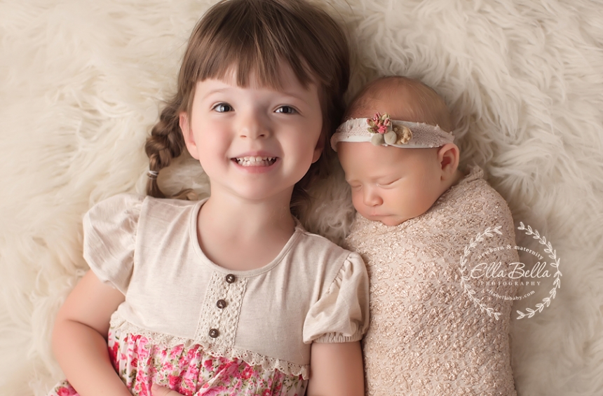 This baby girl’s smile makes my heart melt! Her big sister gave me the same huge smile at her newborn session 2 years ago too!! So fun!! They are both sooo adorable! Sisters and best friends forever